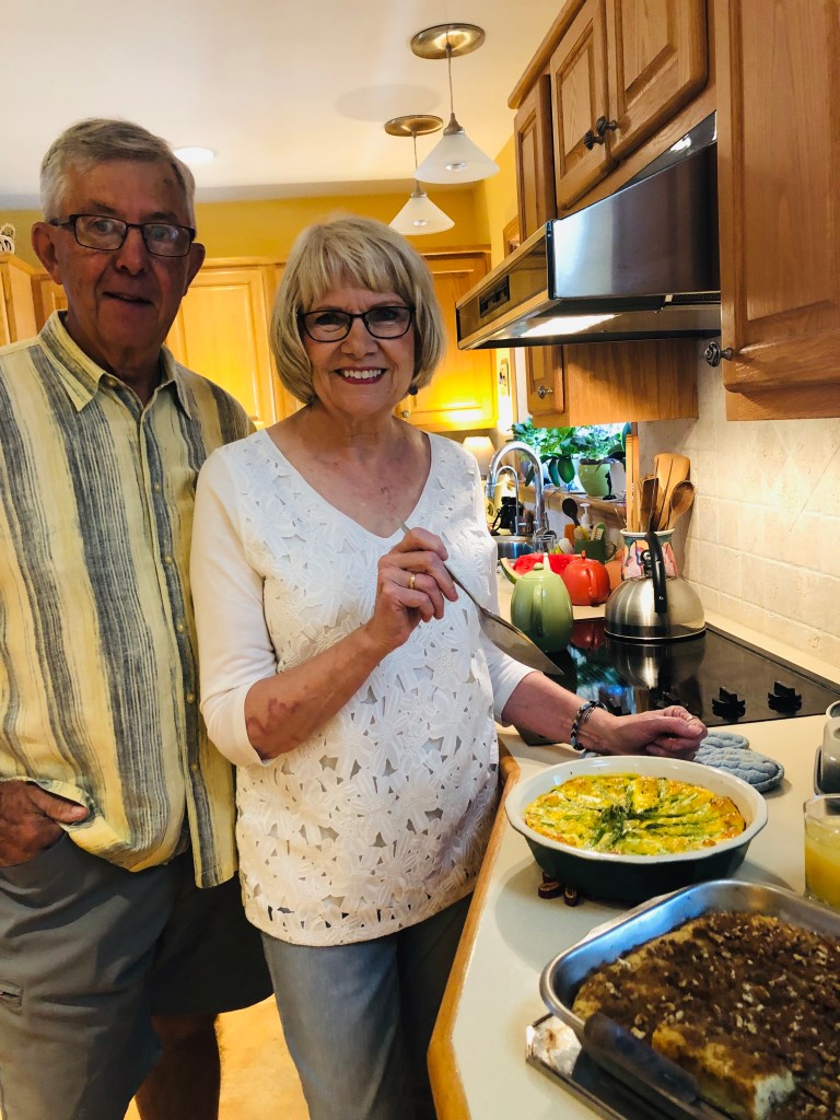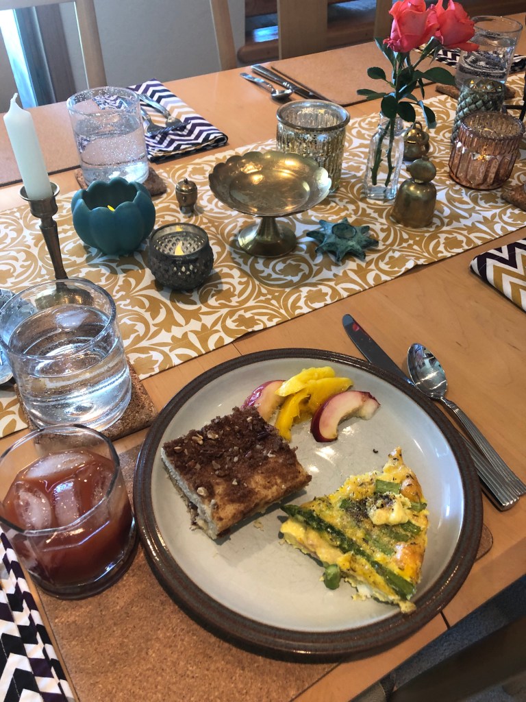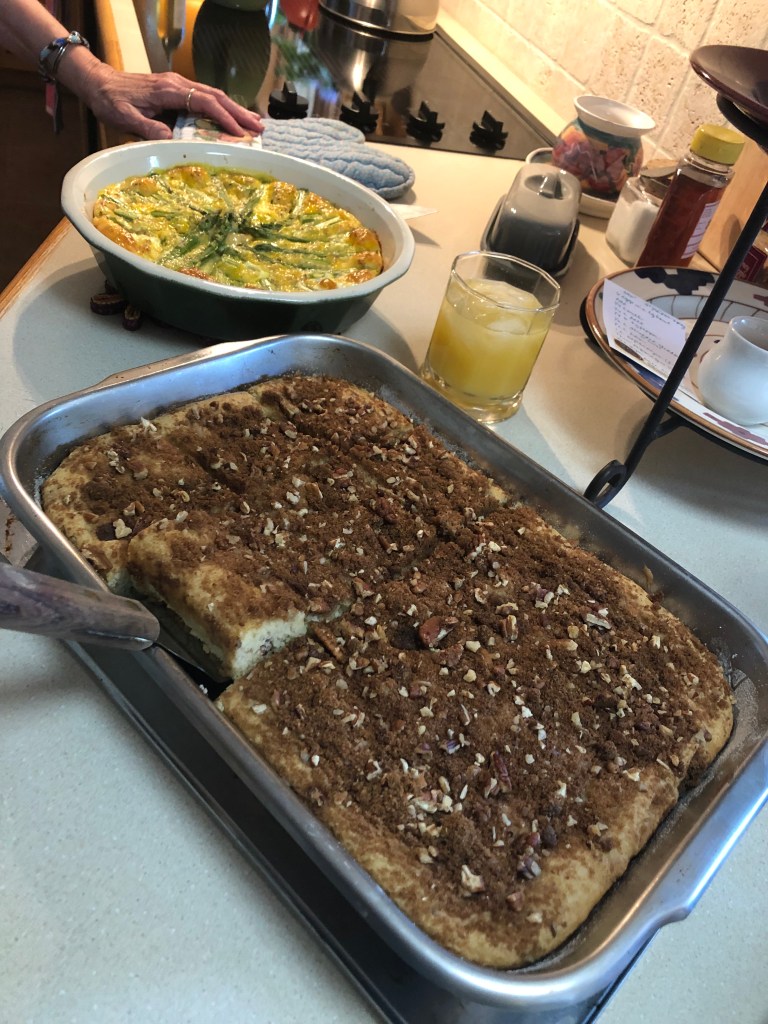 The breakfast began with a wonderful asparagus frittata accompanied by the most wonderful sour cream coffee cake. We had mimosas and coffee with a splash of Bailey’s Irish Cream. I’m not sure if I am allowed to share the recipe, but I want you to see the picture. You may notice that Carole possesses an artist’s eye even in setting a table. We visited and ate the lovely breakfast slowly so as to savor the occasion to the fullest. We took our coffee on the deck overlooking the prairie so famous in Kansas.