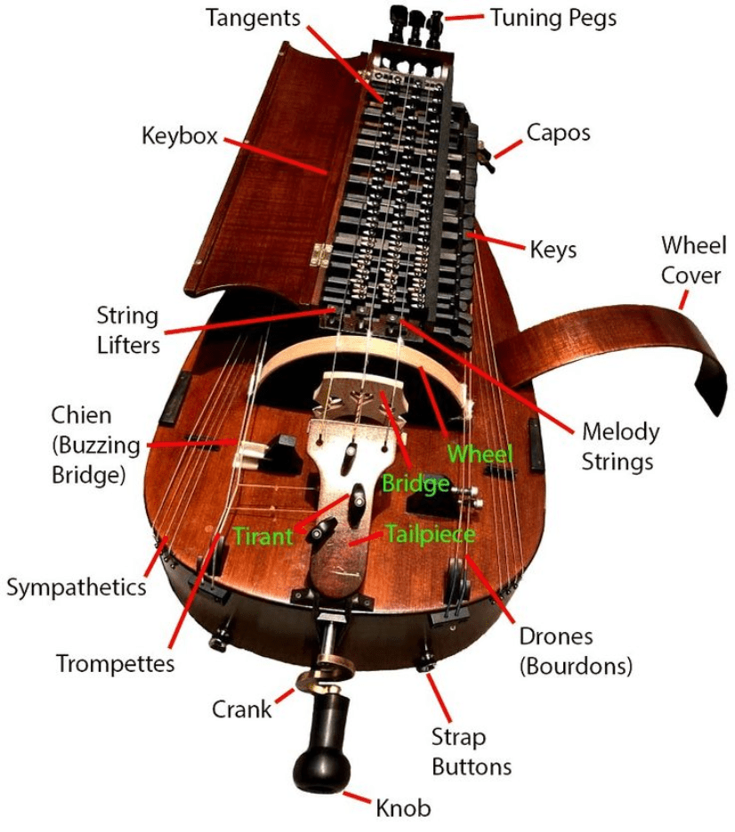 Hurdy Gurdy, a.k.a. Viola de Rueda, and the Zanfona. Here we hear this instrument in Musica Antigua.