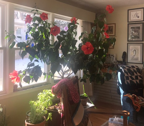 Another way of practicing that sense of being hugged, is looking to the outdoors for rest and relaxation. Viewing nature as if for the first time can be exhilirating! Perhaps asking oneself, “Which season do I like best? Why?” I like to notice what birds are active in which season? For example, I’m seeing more juncos during the winter than in the summer. We see snow geese in the winter but not summer! Those are changes that are only noticed when one looks up or notices changes in nature. It such a thing is new to you, try it sometime. As another example, in the photo, one could ask, “Why is the sunset so red?” The answer: Dust and smoke in the atmosphere from fires and wind (in many cases).