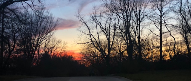 Another way of practicing that sense of being hugged, is looking to the outdoors for rest and relaxation. Viewing nature as if for the first time can be exhilirating! Perhaps asking oneself, “Which season do I like best? Why?” I like to notice what birds are active in which season? For example, I’m seeing more juncos during the winter than in the summer. We see snow geese in the winter but not summer! Those are changes that are only noticed when one looks up or notices changes in nature. It such a thing is new to you, try it sometime. As another example, in the photo, one could ask, “Why is the sunset so red?” The answer: Dust and smoke in the atmosphere from fires and wind (in many cases).